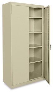 A simple and stylish two door floor cabinet offering functional storage options. Perfect for the home office, bedroom, basement and even garage. It features shaped locking doors (lock included), 4 shelves (3 adjustable, 1 fixed) and the top shelf is full width and adjustable. Middle shelf is full width, fixed at 27-3/4-inch from bottom and has a centre support. It features 2 lower shelves; one on each side of the centre support are adjustable and the adjustable shelves can be adjusted to 5 different heights( 2-1/2-inch gap). It features plastic handles with a silver finish . The floor cabinet is fully finished inside. It is shown in Solid Black finish. It is also available in royal cherry, in chocolate and in morgan cherry. In addition, it has been designed to perfectly match any South Shore Furniture's item in Solid Black finish. Measures 35-inch wide by 19-inch deep by 60-inch high. The weight capacity for the adjustable shelves is 35 pounds and for the Middle fixed shelf is 100-pound. It is made of recycled CARB compliant particle panels. It has to be assembled by two adults. It is delivered in one box measuring 66-3/4-inch by 21-3/4-inch by 8-1/2-inch and weights 125 pounds. Tools are not included. 5-year warranty. Made in Mexico. Wipe clean with a dry cloth.